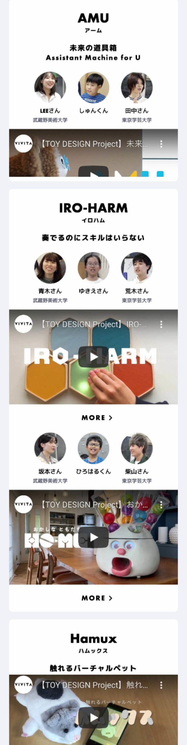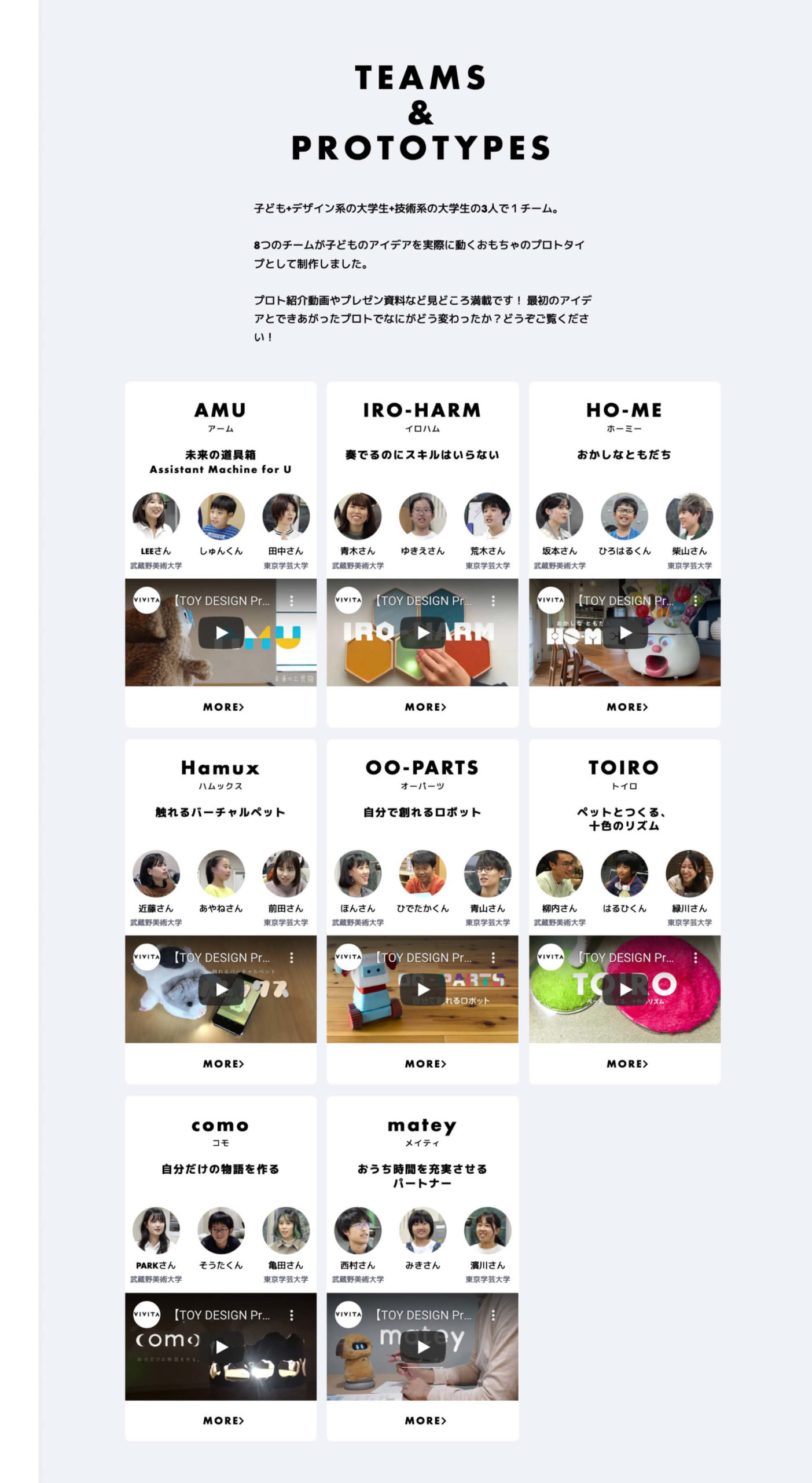 VIVITAと武蔵野美術大学、東京学芸大学の共同プロジェクトのプロジェクトサイト。 子どもと大学生がチームになってこどものアイデアをもとにおもちゃをつくるというプロジェクト。