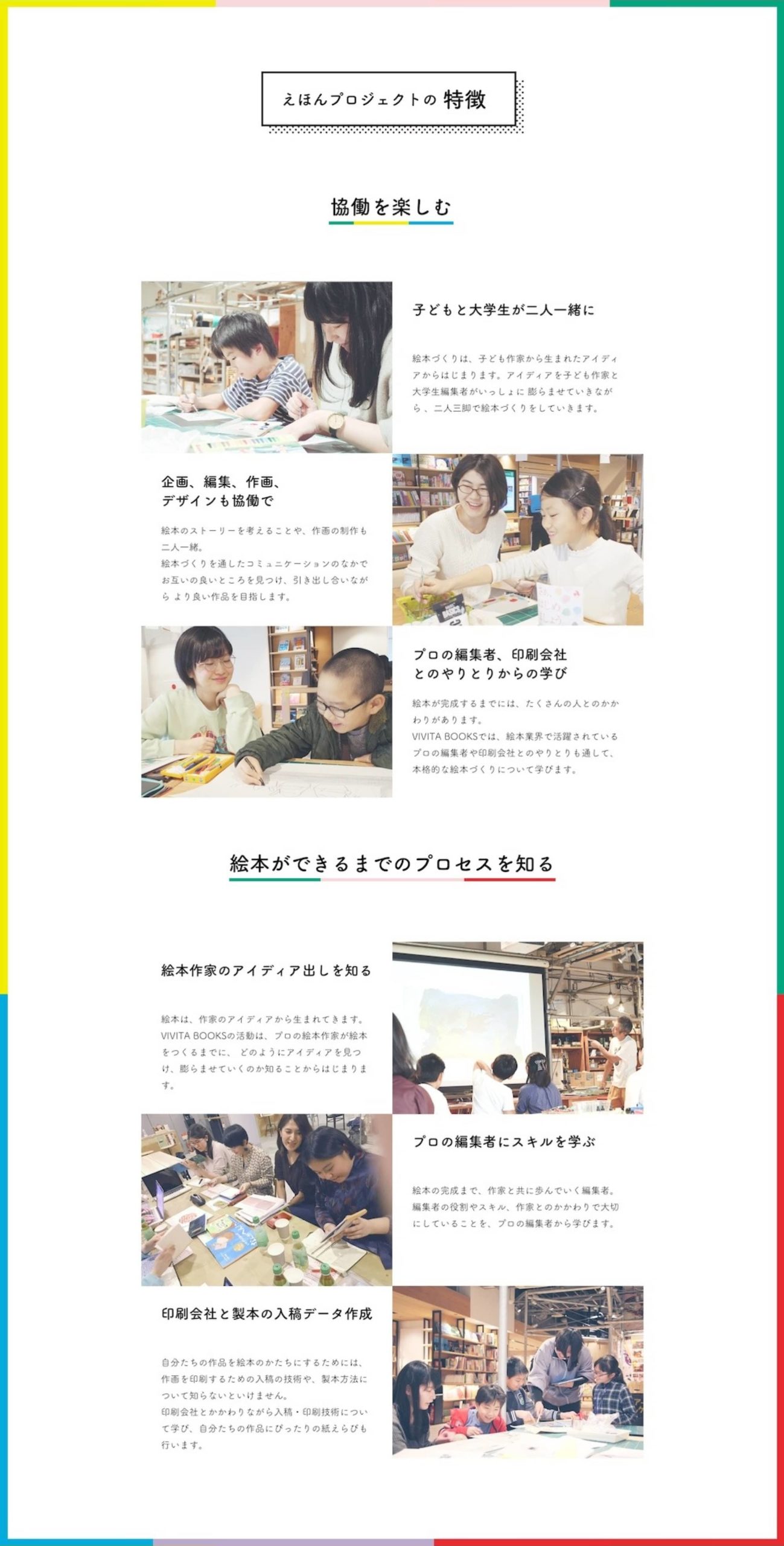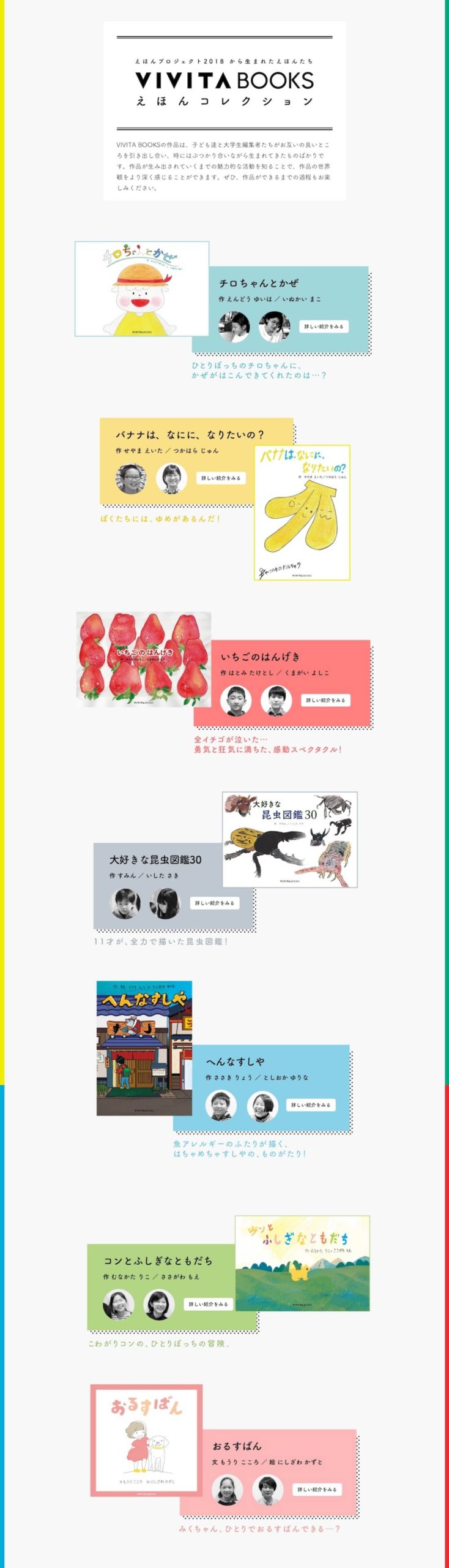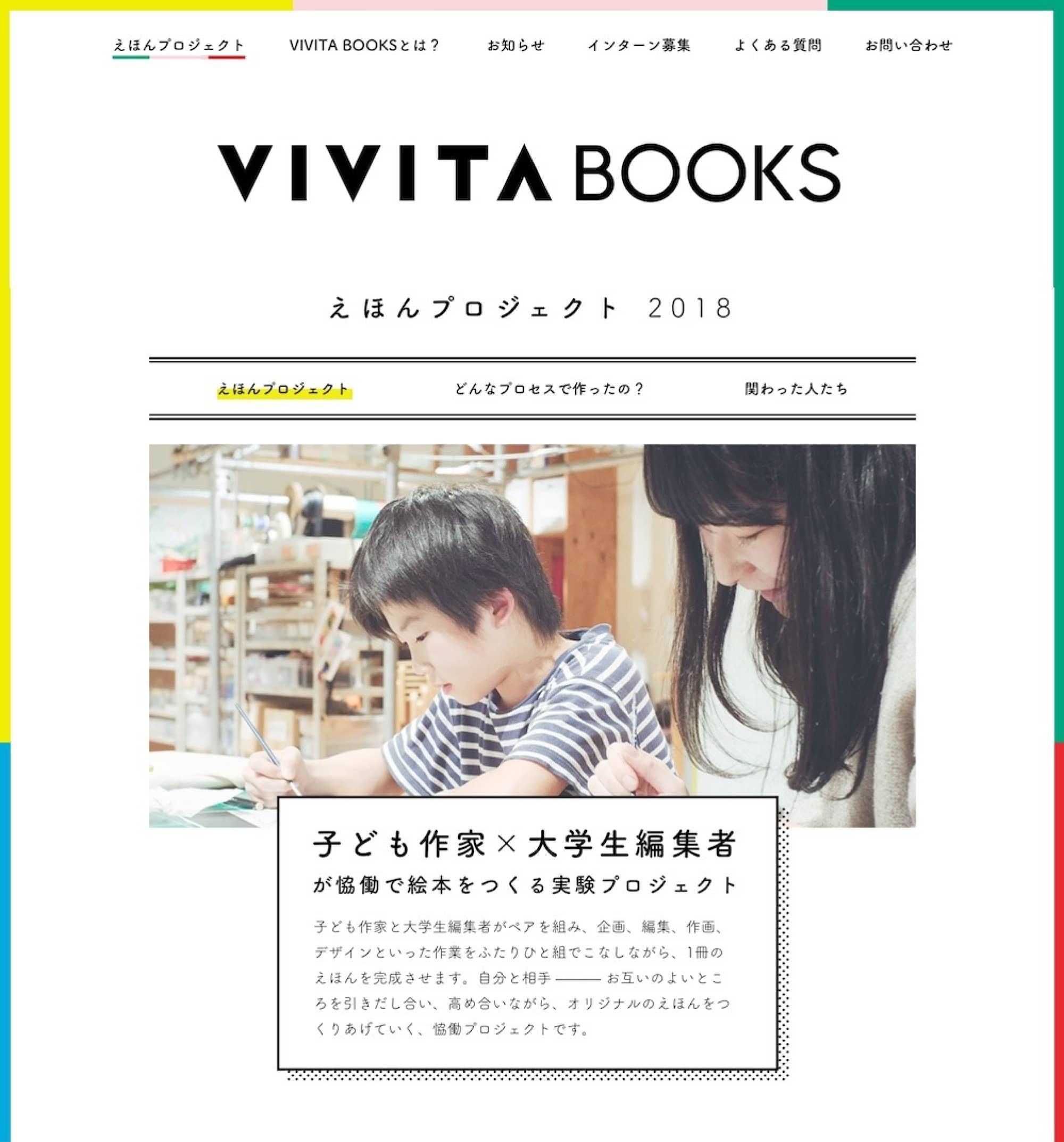 子どもと大学生編集者が一緒に絵本をつくるプロジェクトVIVITA BOOKSのプロジェクトサイト。